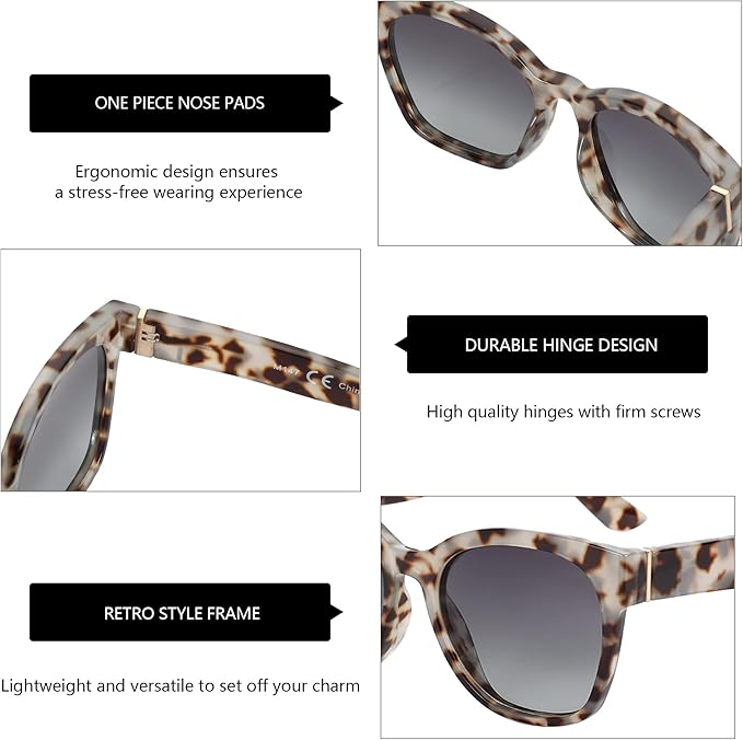 Style Design: classic square sunglasses are designed for all face type urban women, with 1.1mm TAC polarized lens suitable for many outdoor activities,such as shopping, driving, traveling, fishing. The classic style colorful shades making it a fashion style wear in your daily life.