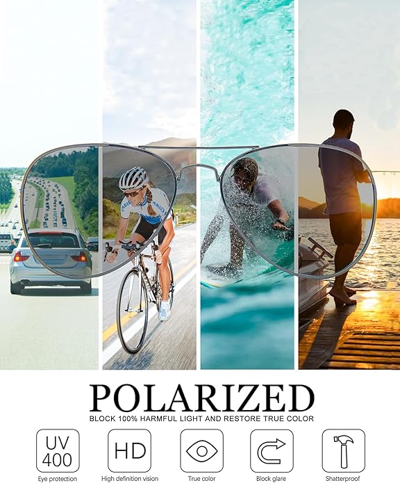 HD UV400 POLARIZED TAC LENSES: Effectively protecting eyes by blocking 99.99% harmful UVA & UVB rays, providing you with a high definition visual experience