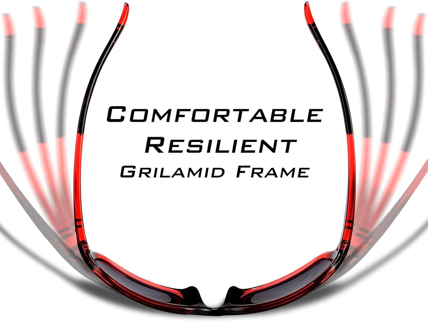 PREMIUM FRAMES – Made from the same Grilamid material commonly used in military and medical applications,sunglass frames are lightweight, extremely flexible, and heat and UV resistant. Grilamid frames are well known for their astounding strength, lightweight comfort, shape integrity, and impact resistance. This ultra-lightweight and malleable material translates to a comfortable fit and the tacky nose and temple pads prevent slipping..