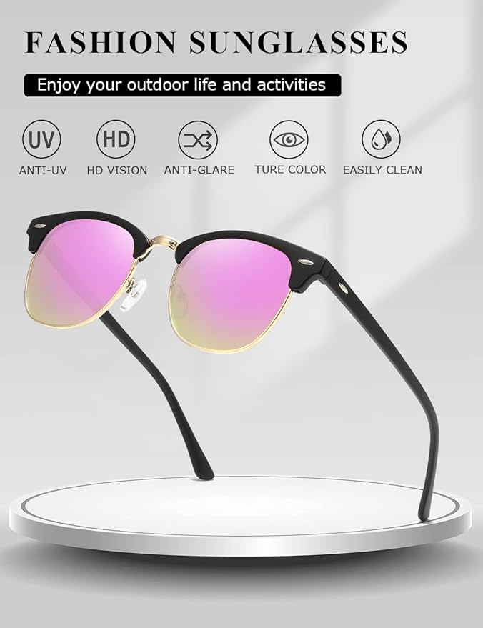 sunglasses is made of high quality metal material and reinforced metal hinges that is durable enough for long time using. They are suitable for any climate and weather conditions.