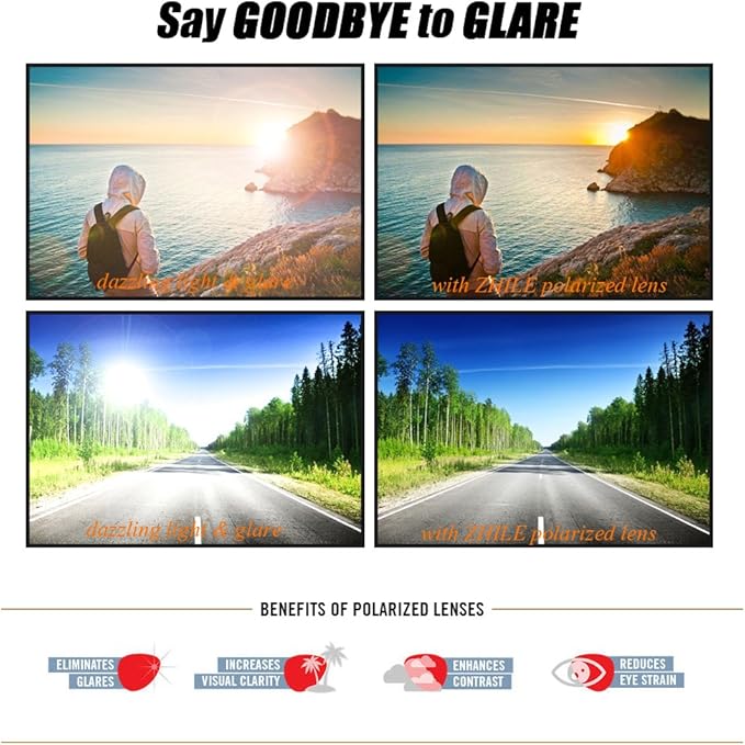 【100% UV400 Protection & Polarized Lenses that Eliminate Glare】---- polarized sunglasses block the harmful sun's rays from damaging your eyes which can cause deep wrinkles, cataracts, macular degeneration, and cancer in and around the eye.
