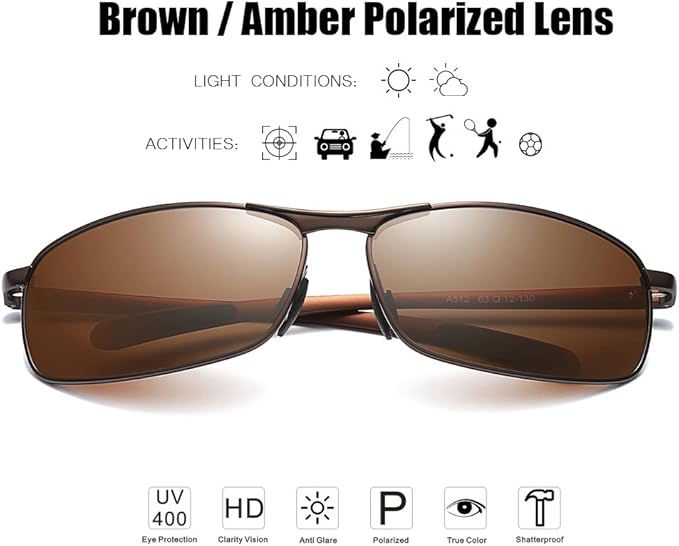 【Brown/Amber Color of Lens】---- Best choice for golf, tennis, shooting for cloudy to sunny condition.