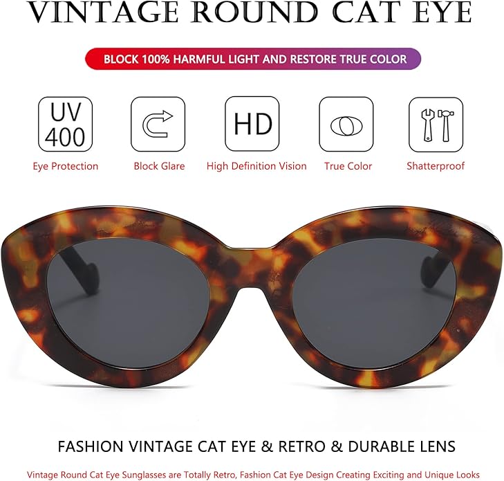 Oversized Cat Eye Sunglasses for Women Cute Oval Thick Frame Cateye Sun Glasses Chic Retro Style Shades
