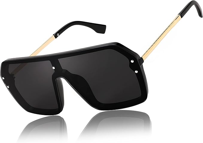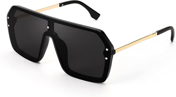 Oversized Sunglasses for Women Polarized UV Protection Classic Fashion Ladies Shades Black Frame Gray Lens