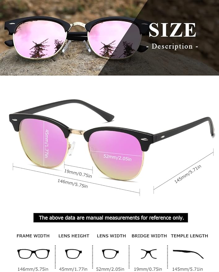 Polarized Sunglasses For Women And Men Semi Rimless Frame Retro Sun Glasses