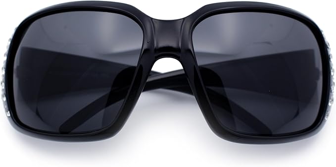 Polarized Lens Oversize Rhinestone Bling Sparkling Womens Sunglasses