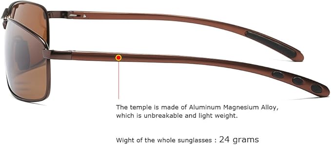 Rectangular Polarized Sunglasses Al-Mg Alloy Temple Spring Hinge UV400
