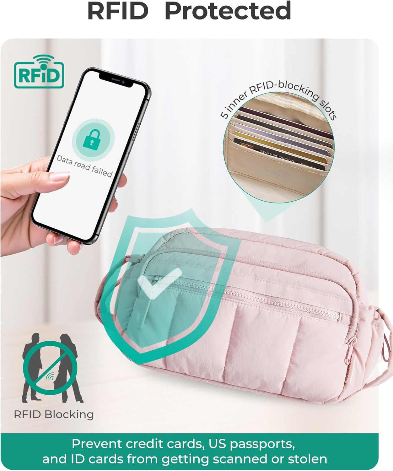 Blocking Security: Cross body purse built-in front wallet pocket includes five RFID-protected card slots, keeping your credit cards and ID safe from electronic theft