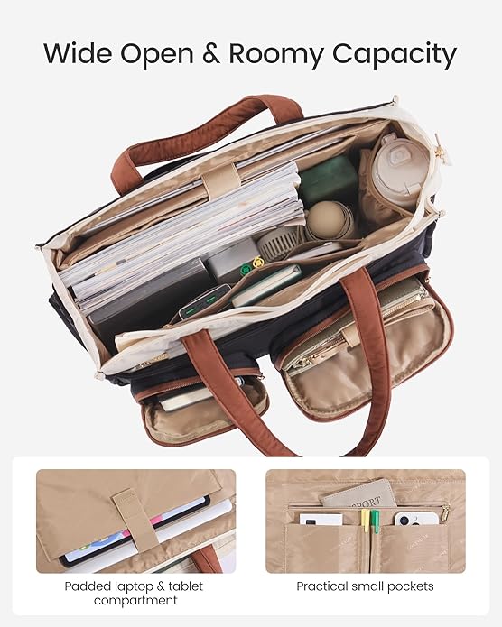 Effortless Portability: Designed for comfort and durability, this work tote bag for women features cloud-soft cotton-padded handles to ease shoulder strain, while water-resistant nylon protects against spills and rain. The back luggage strap slides smoothly over suitcase handles, This travel tote is a perfect travel companion for flights, business trips, and daily commutes.