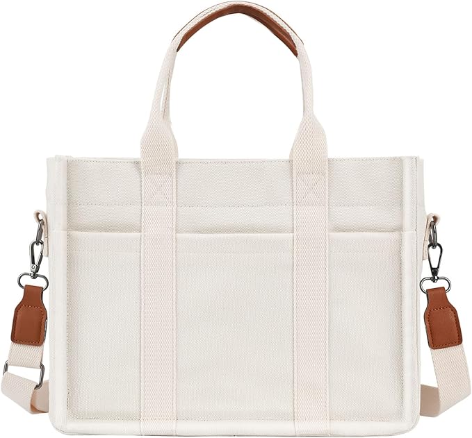 Top Zipper Closure & Thick Bottom Support: the work tote bag is designed with top zipper to keep your belongings safe and secure. Besides, the reinforced thick bottom provides stability and can easily hold heavier items without losing its shape